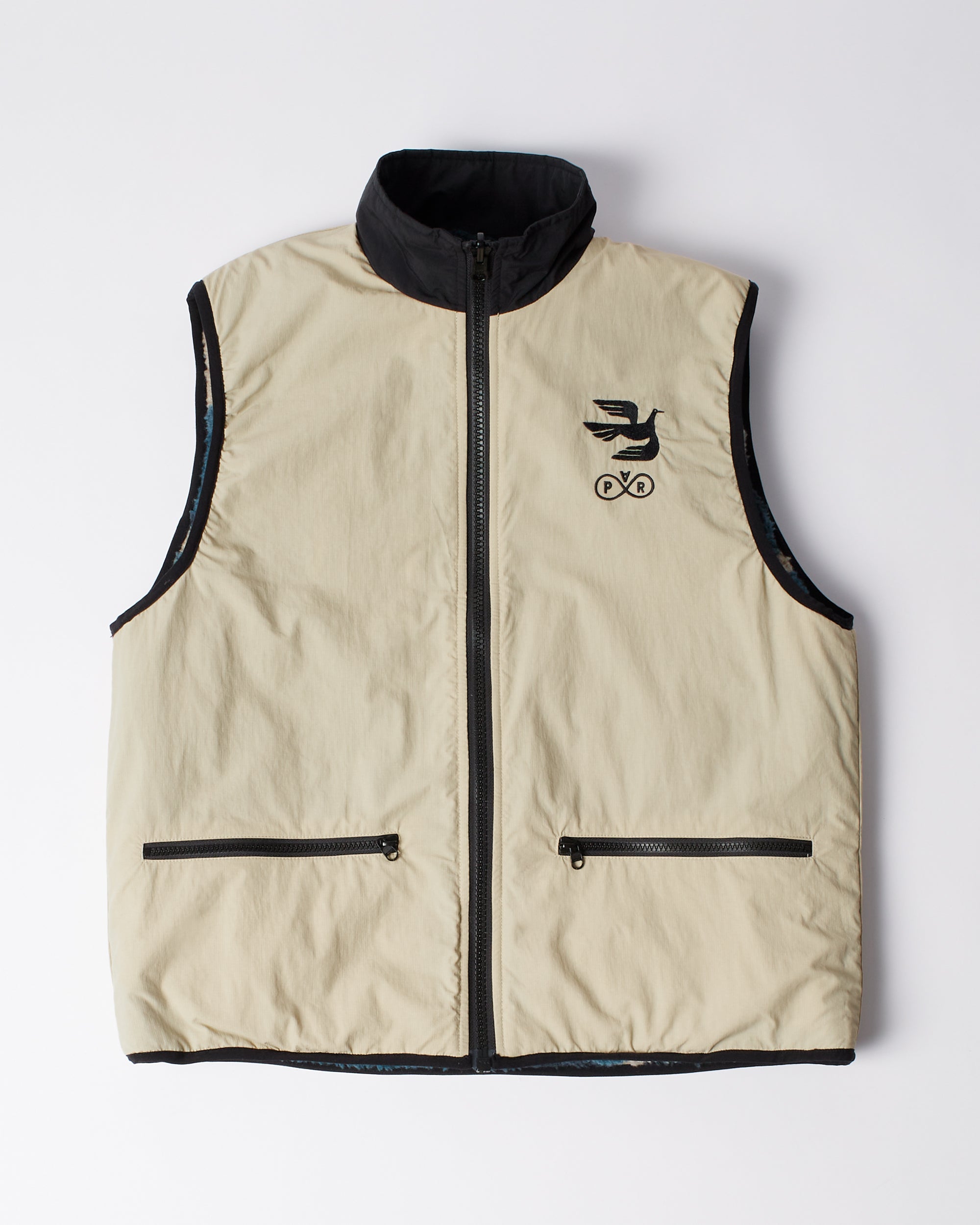 The fleece side is printed all over with artwork, has a pocket with signature logo on the chest. The Infinite bird logo embroidery on the chest at the tonal shell.