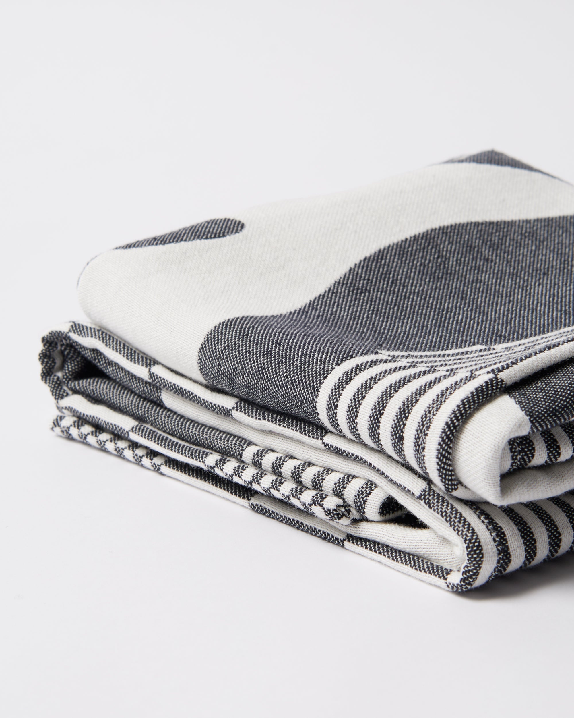 Two pack of kitchen towels. Jacquard knitted with Infinite kitchen bird artwork.