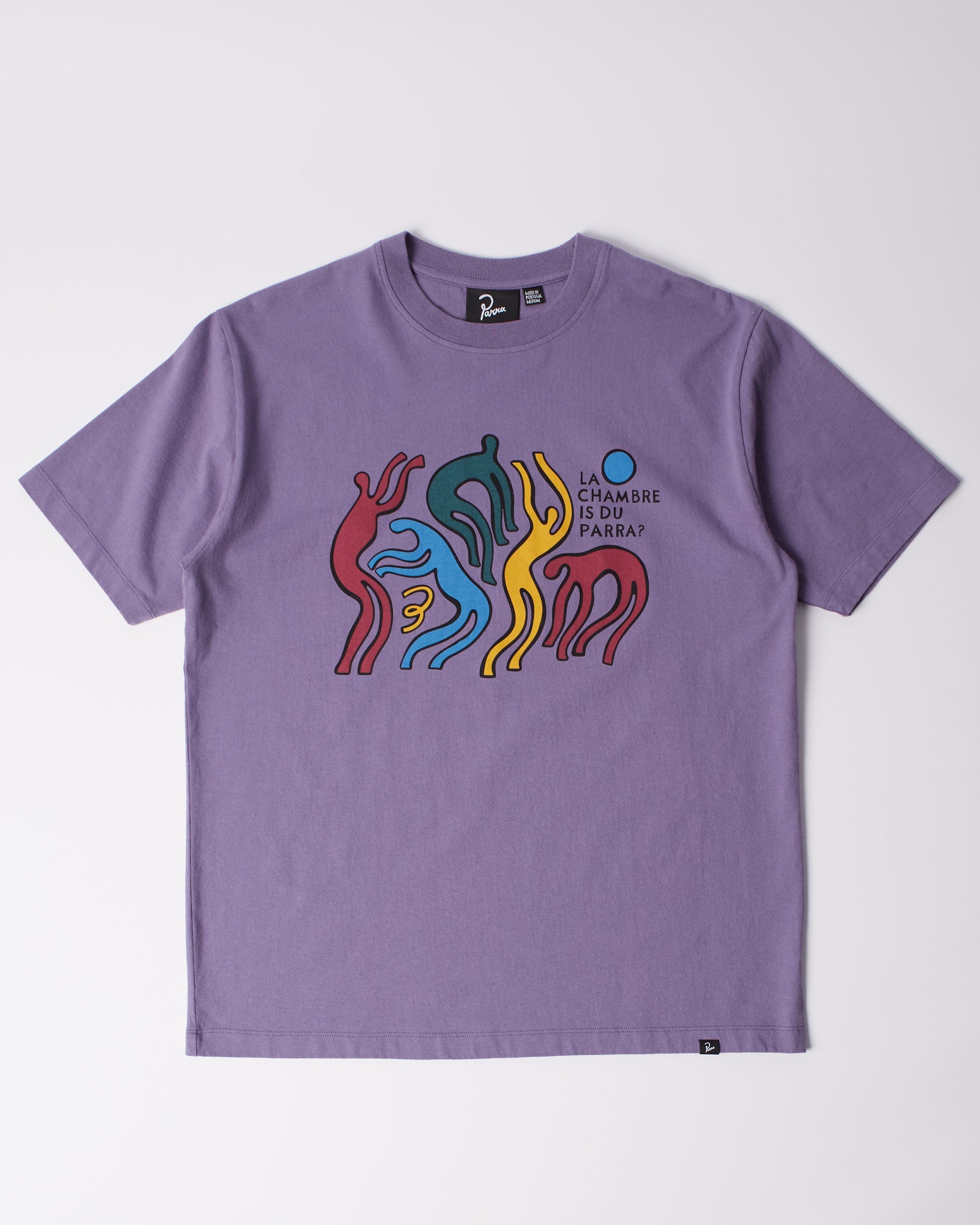 La chambre nuit artwork as a waterbased screenprint at chest. All Parra t-shirts are a boxy custom fit.