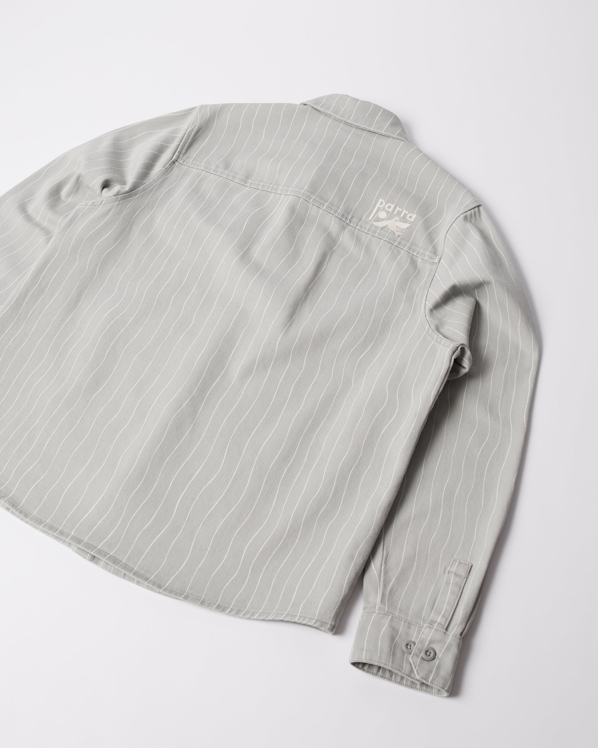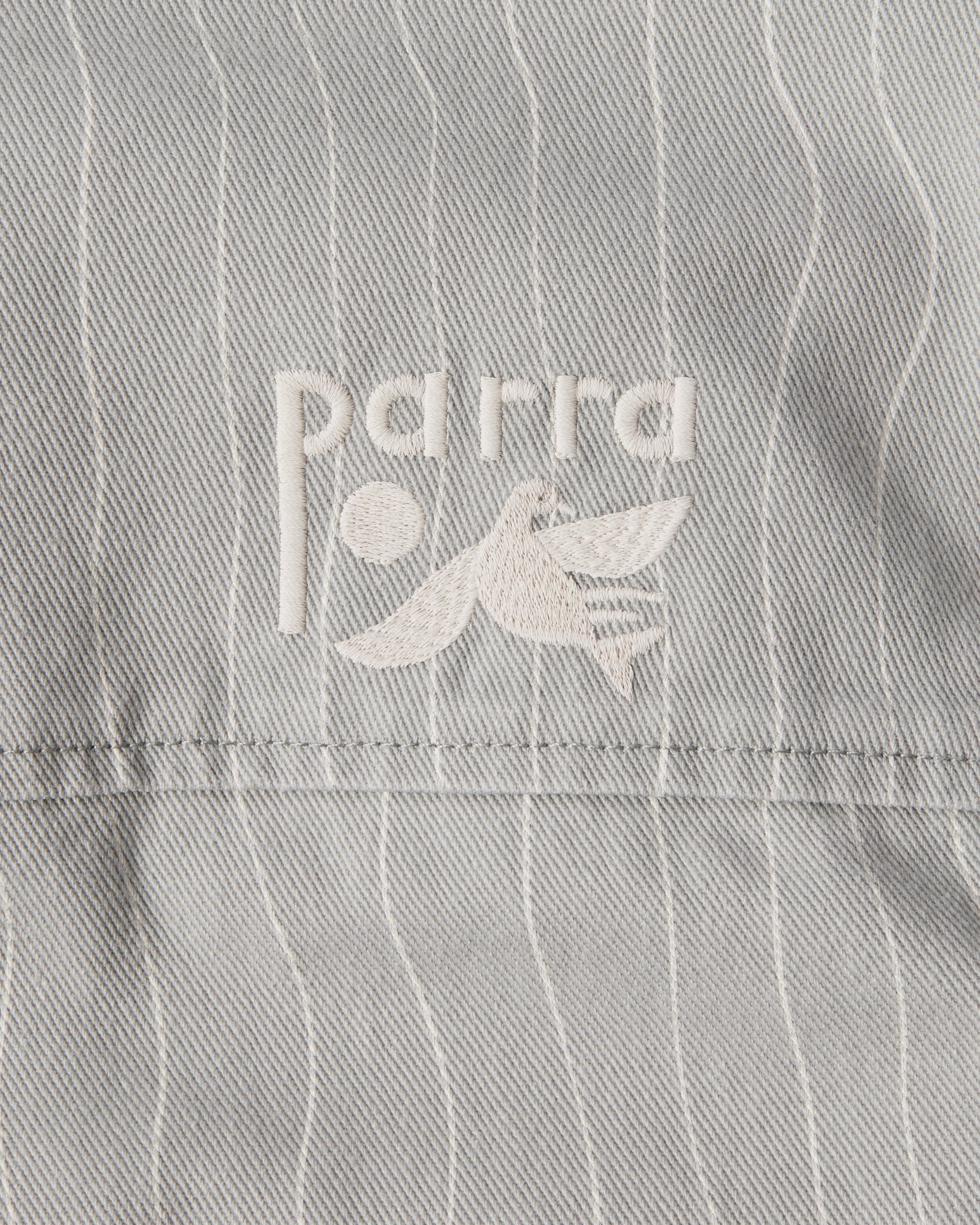Meandering lines printed all over on heavy twill fabric with an embroidery on the back.