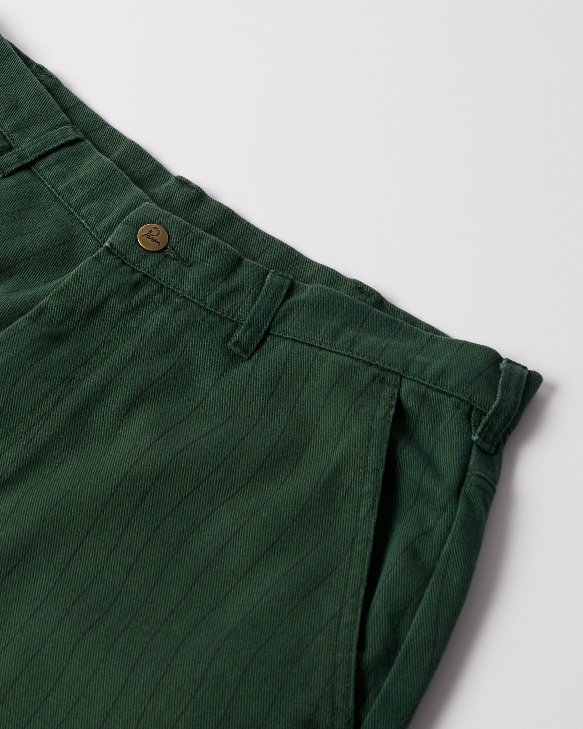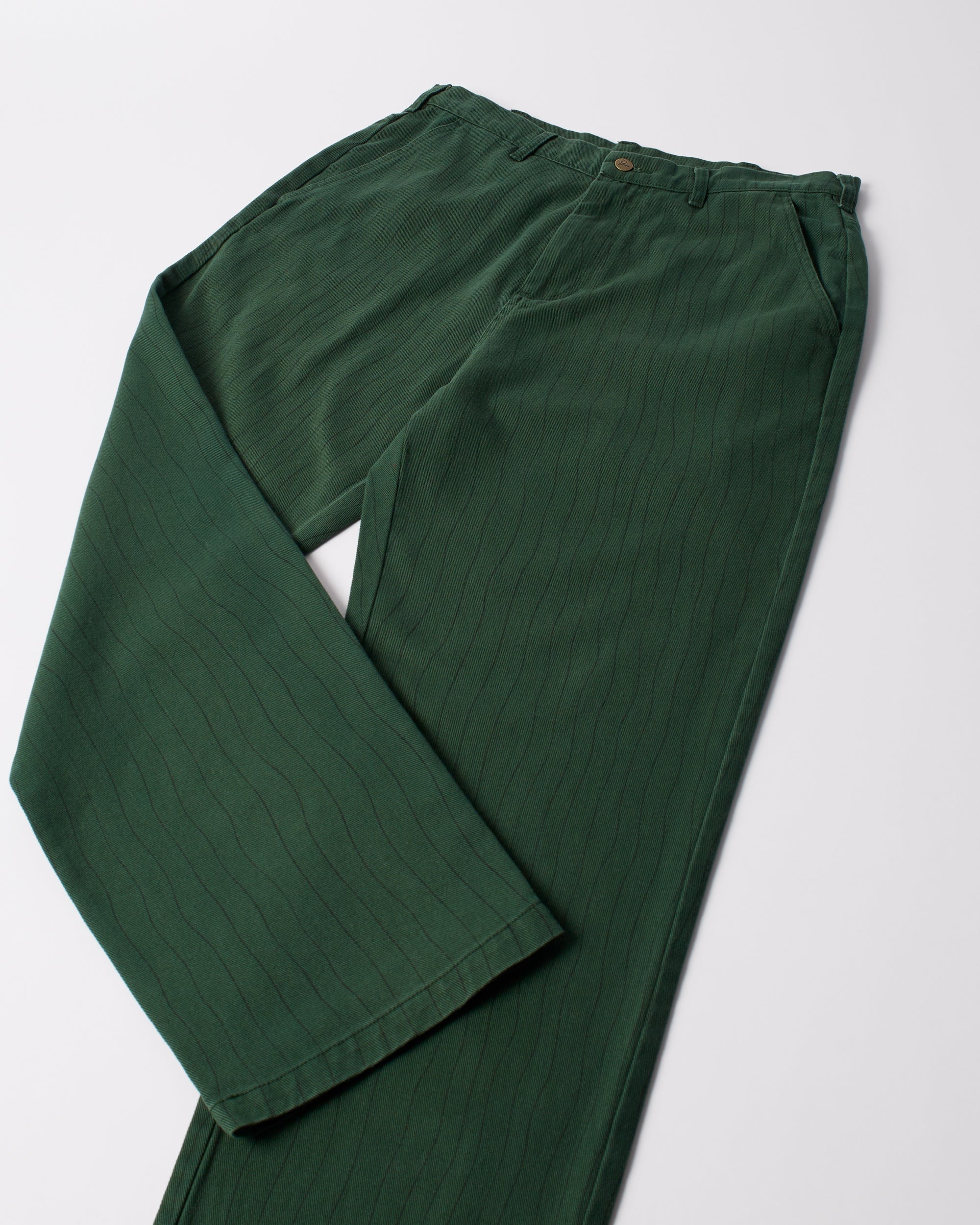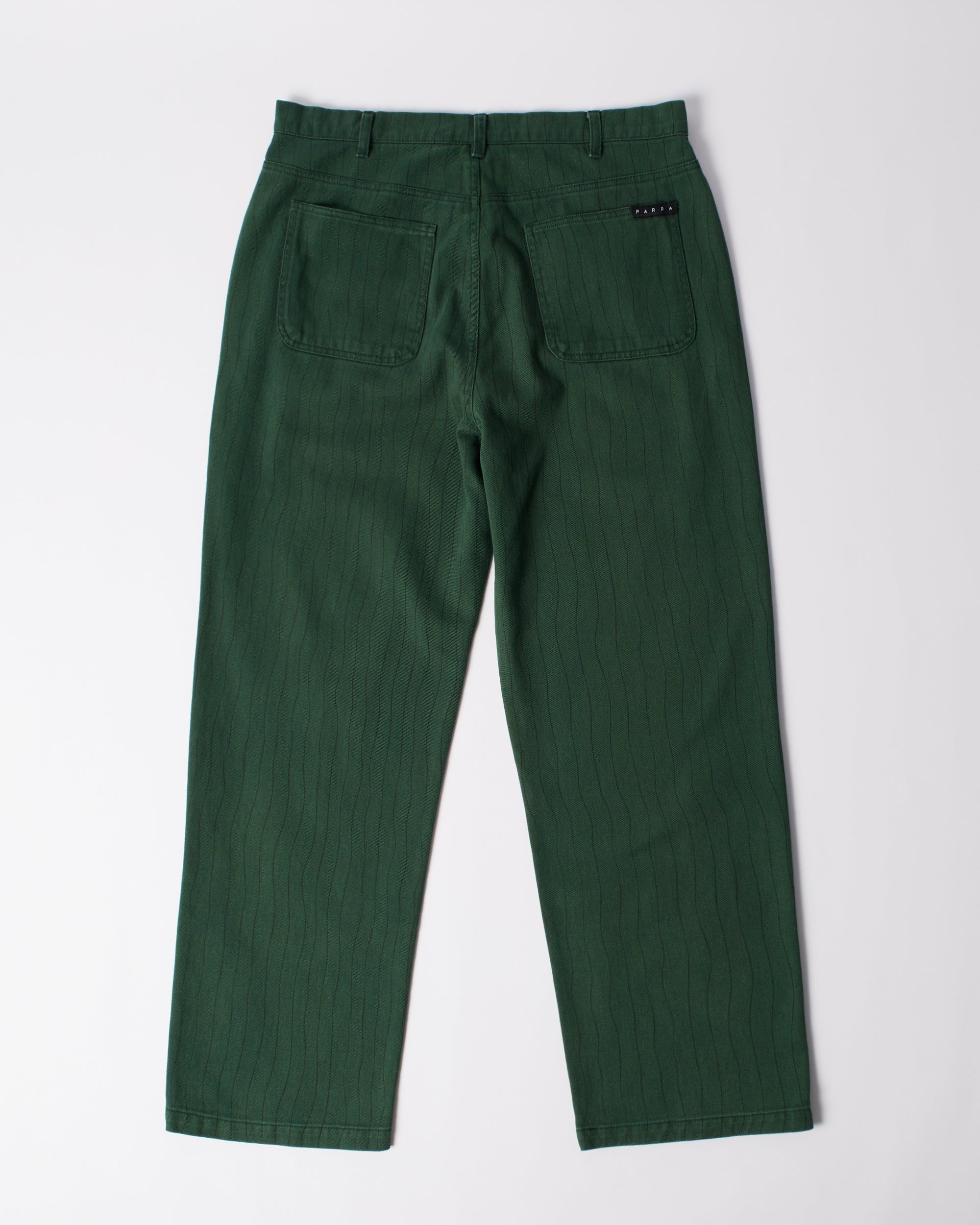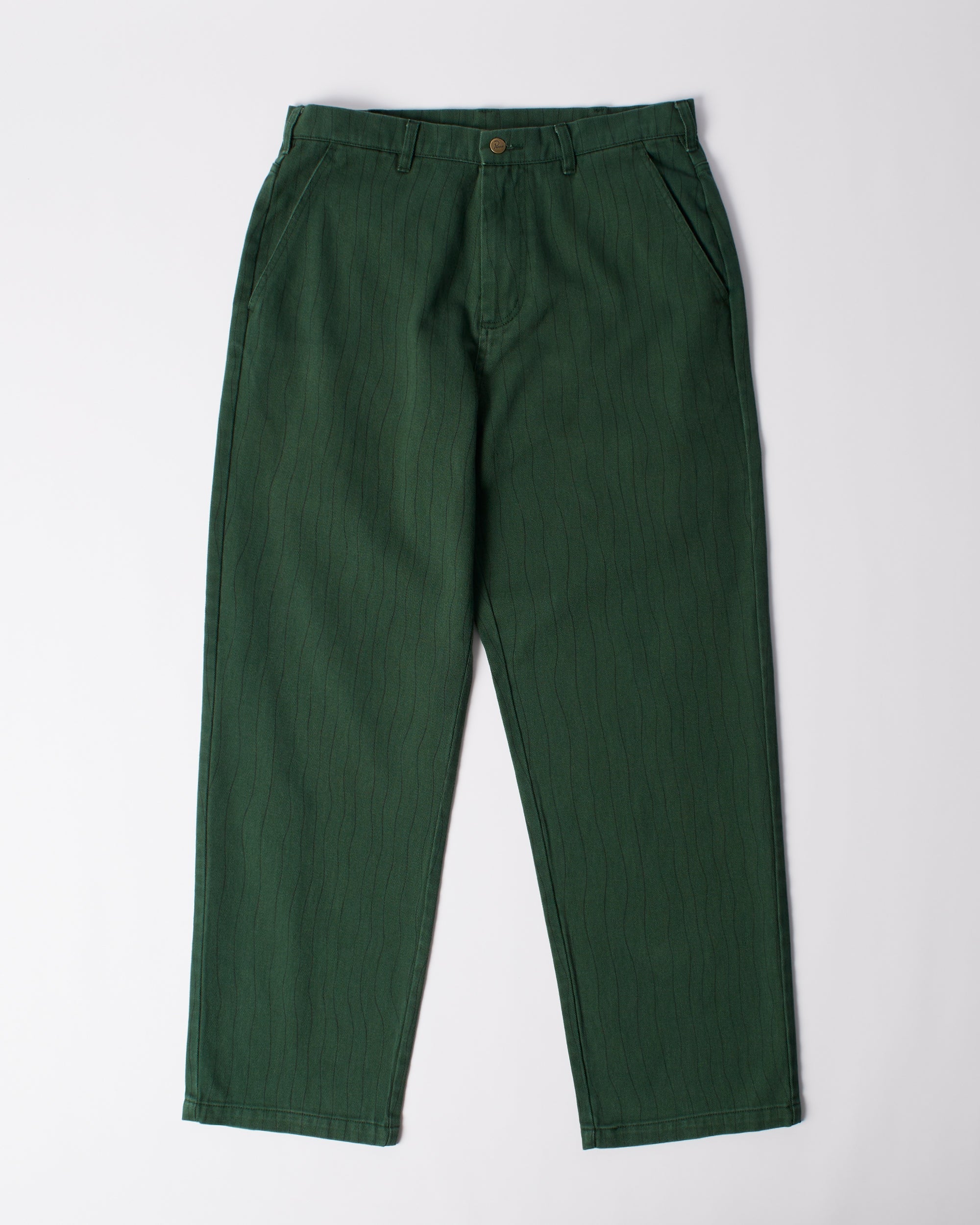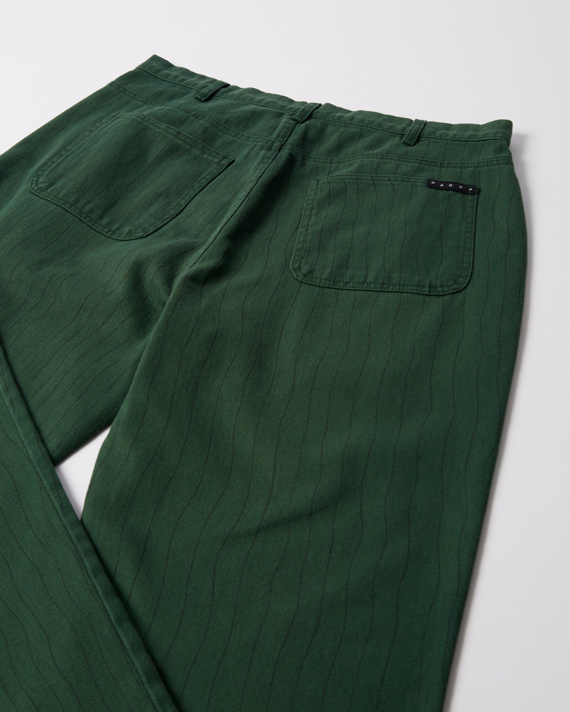 Meandering lines printed all over on heavy twill fabric. The pants is a relaxed wide fit.