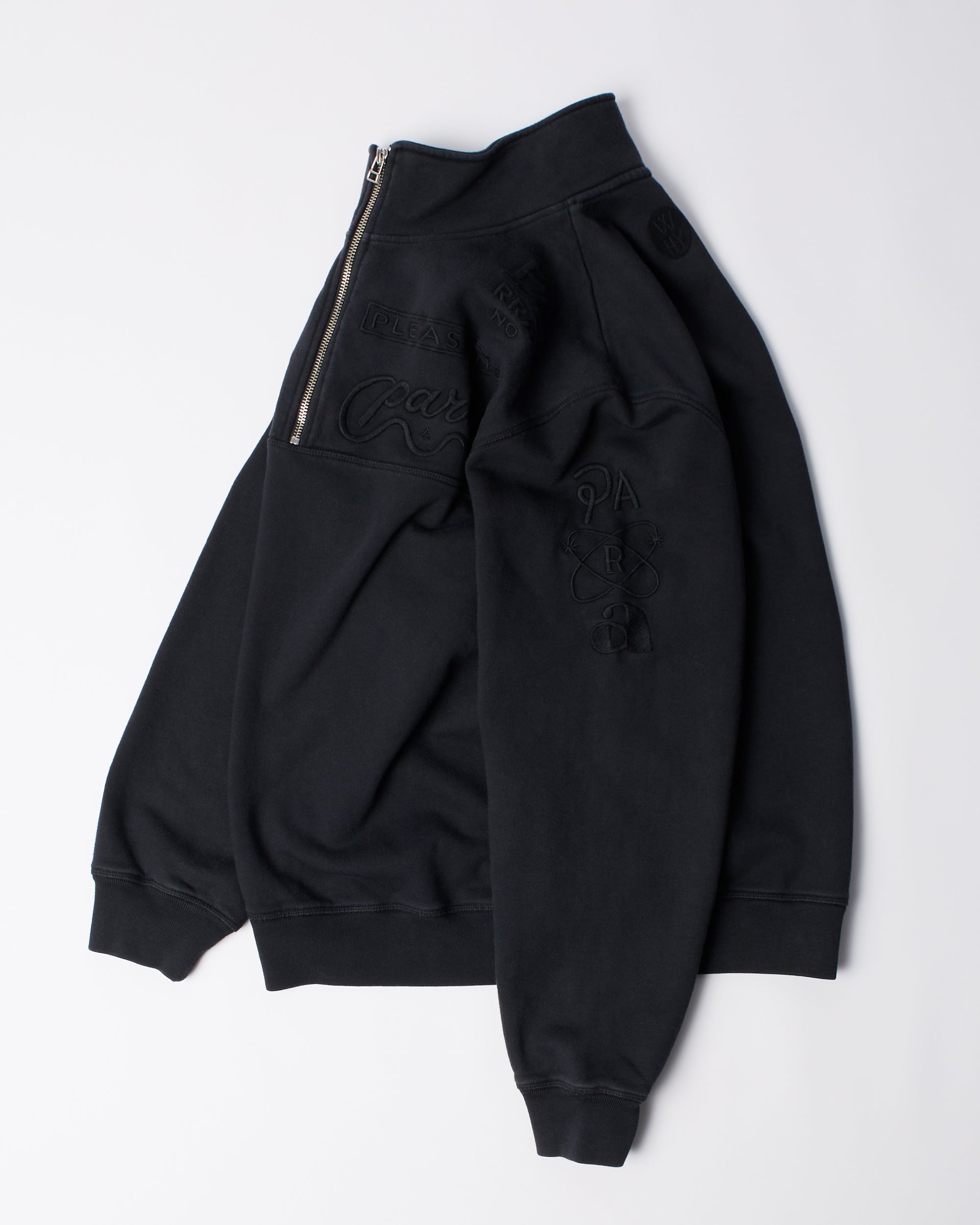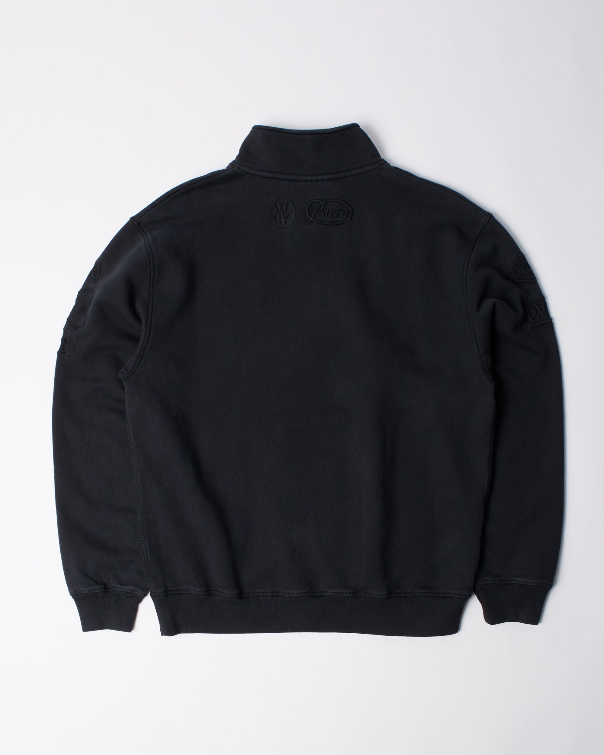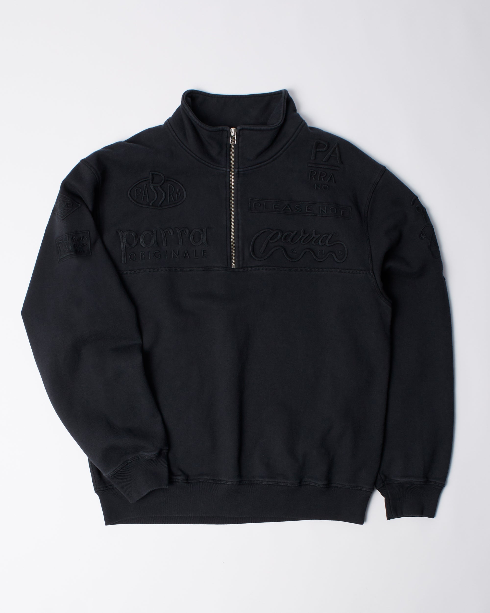 Quarter zip with tonal Parra logos embroidered on the chest, sleeves and back.