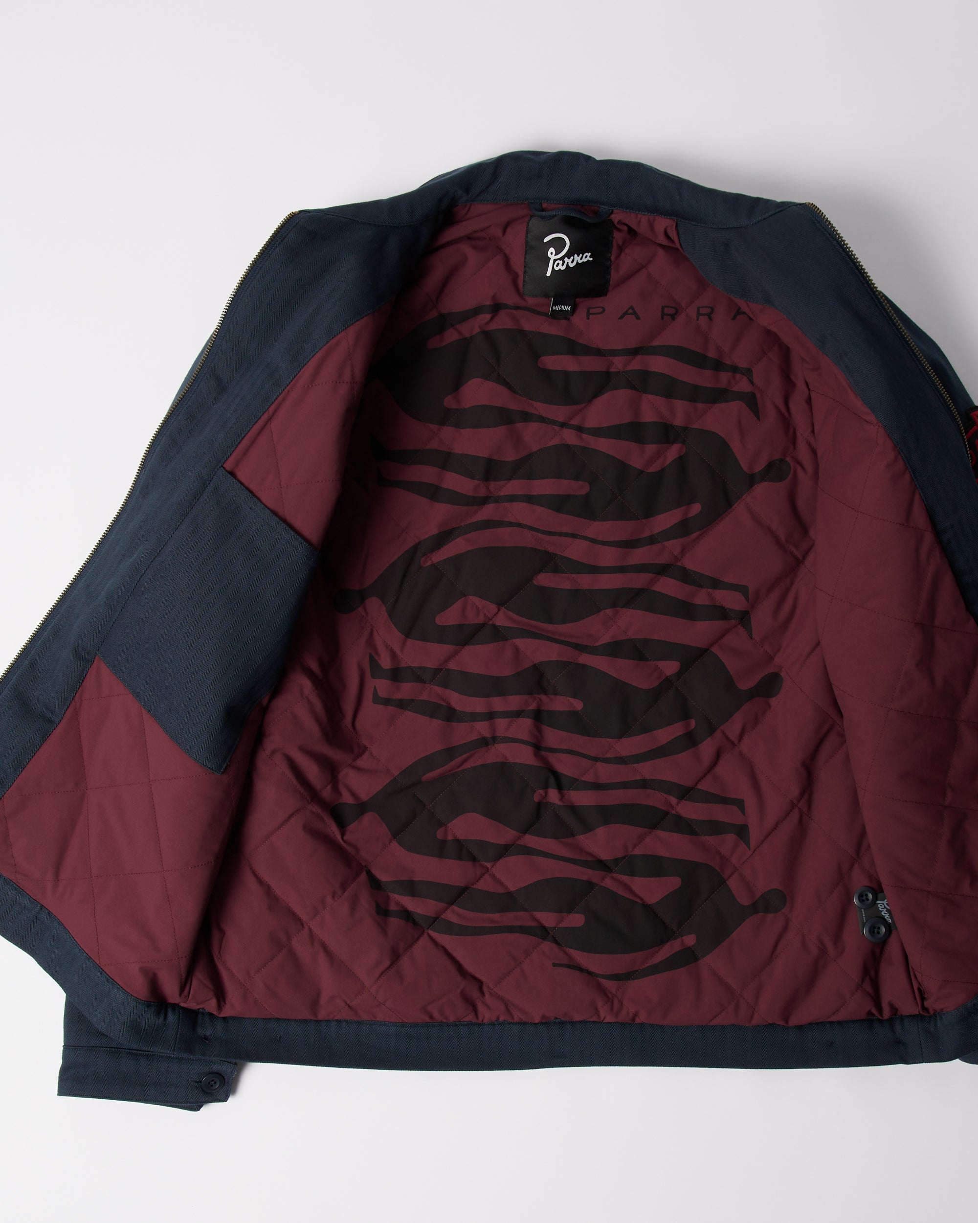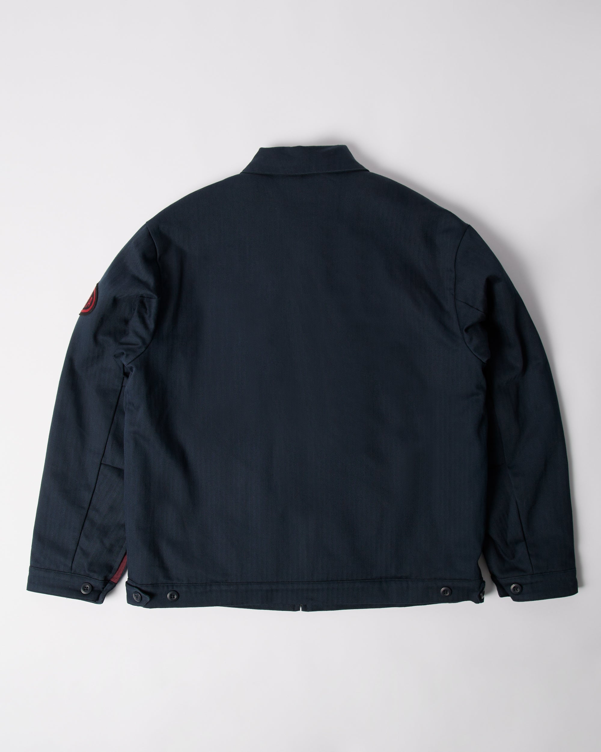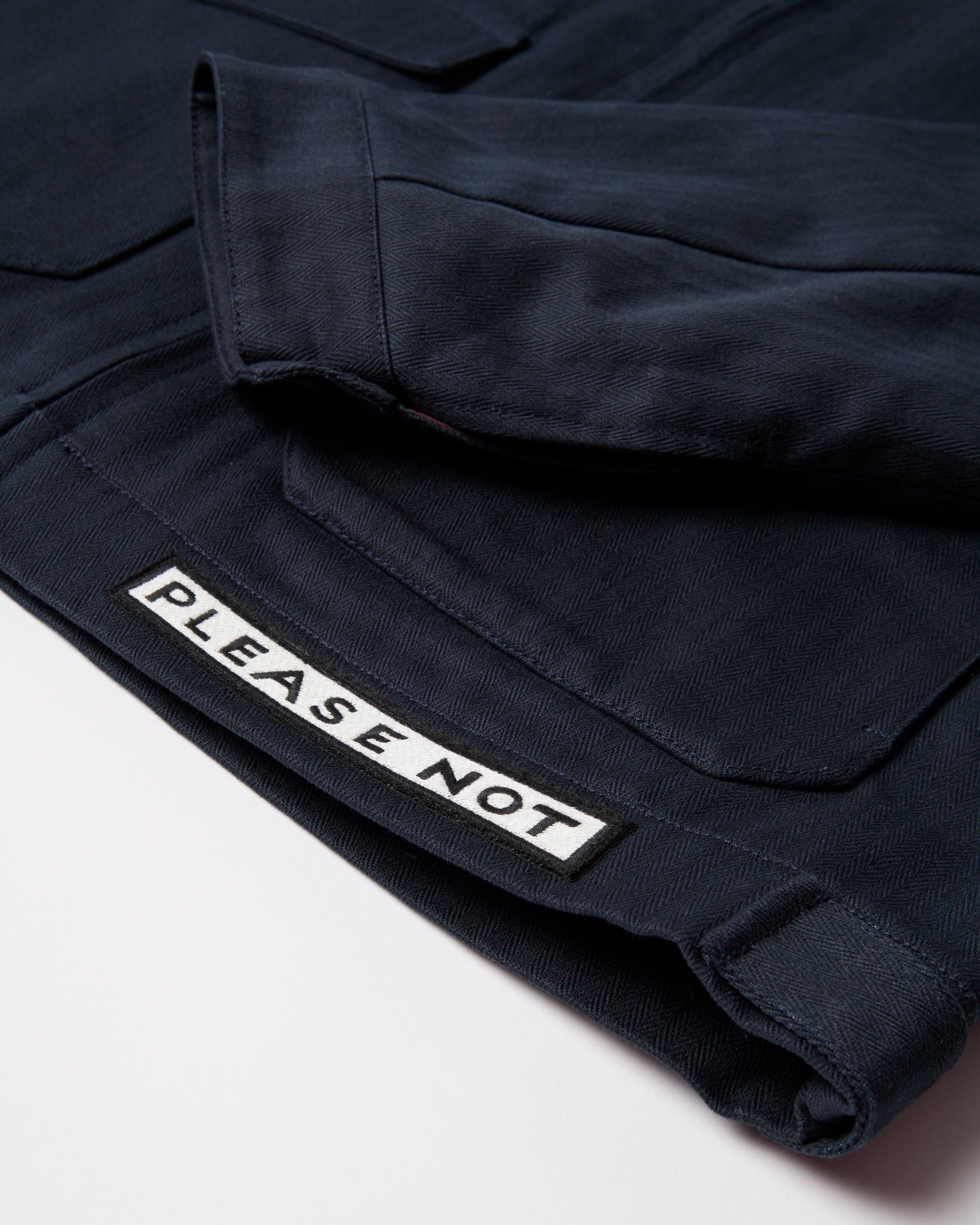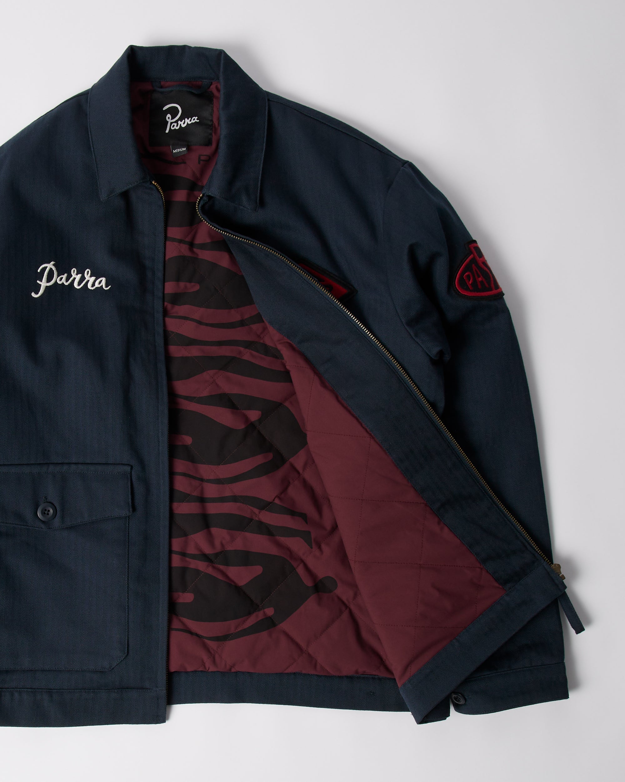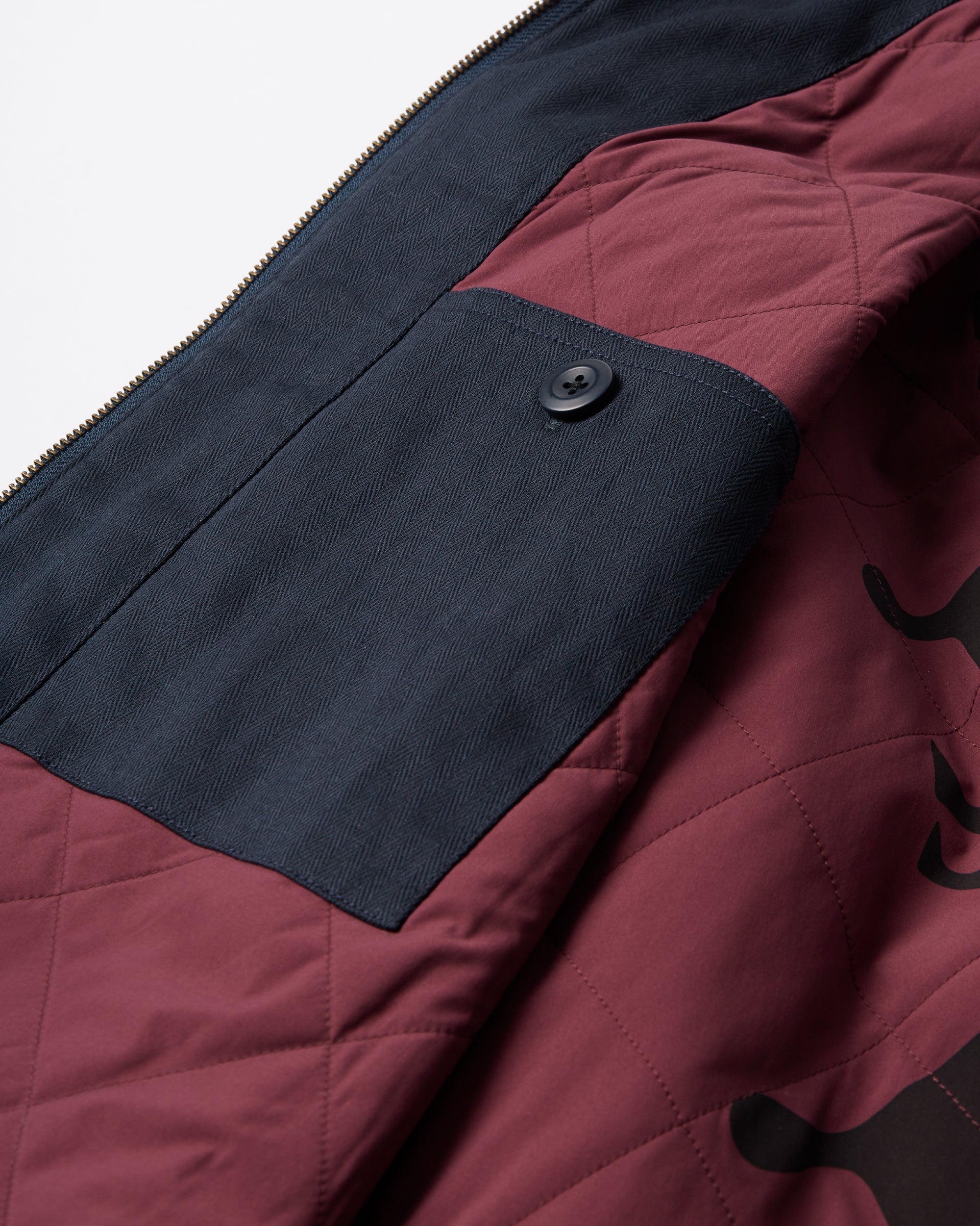 Jacket inspired on classic trucker jacket has embroideries on chest and one at the hem. Big print on the quilted lining.