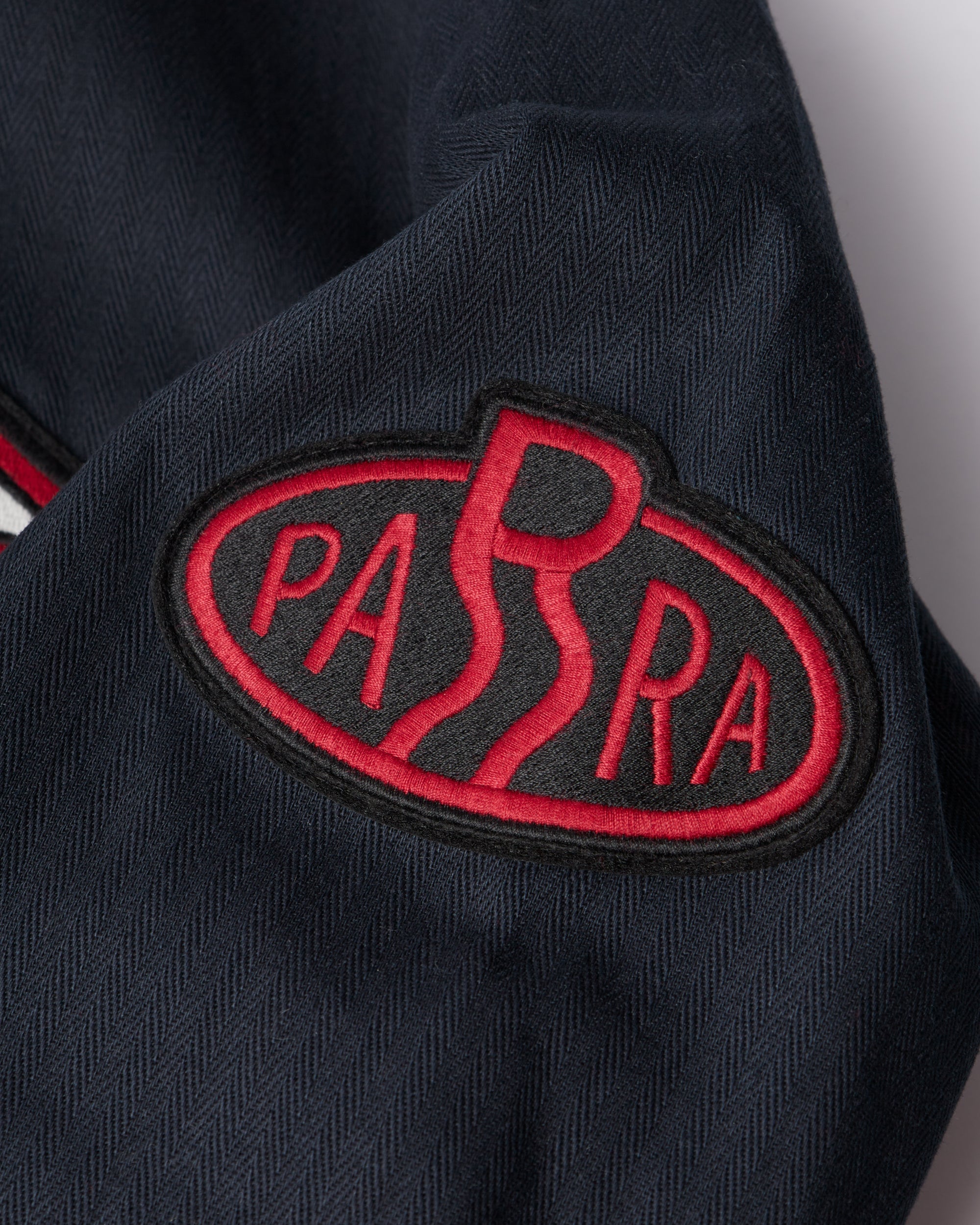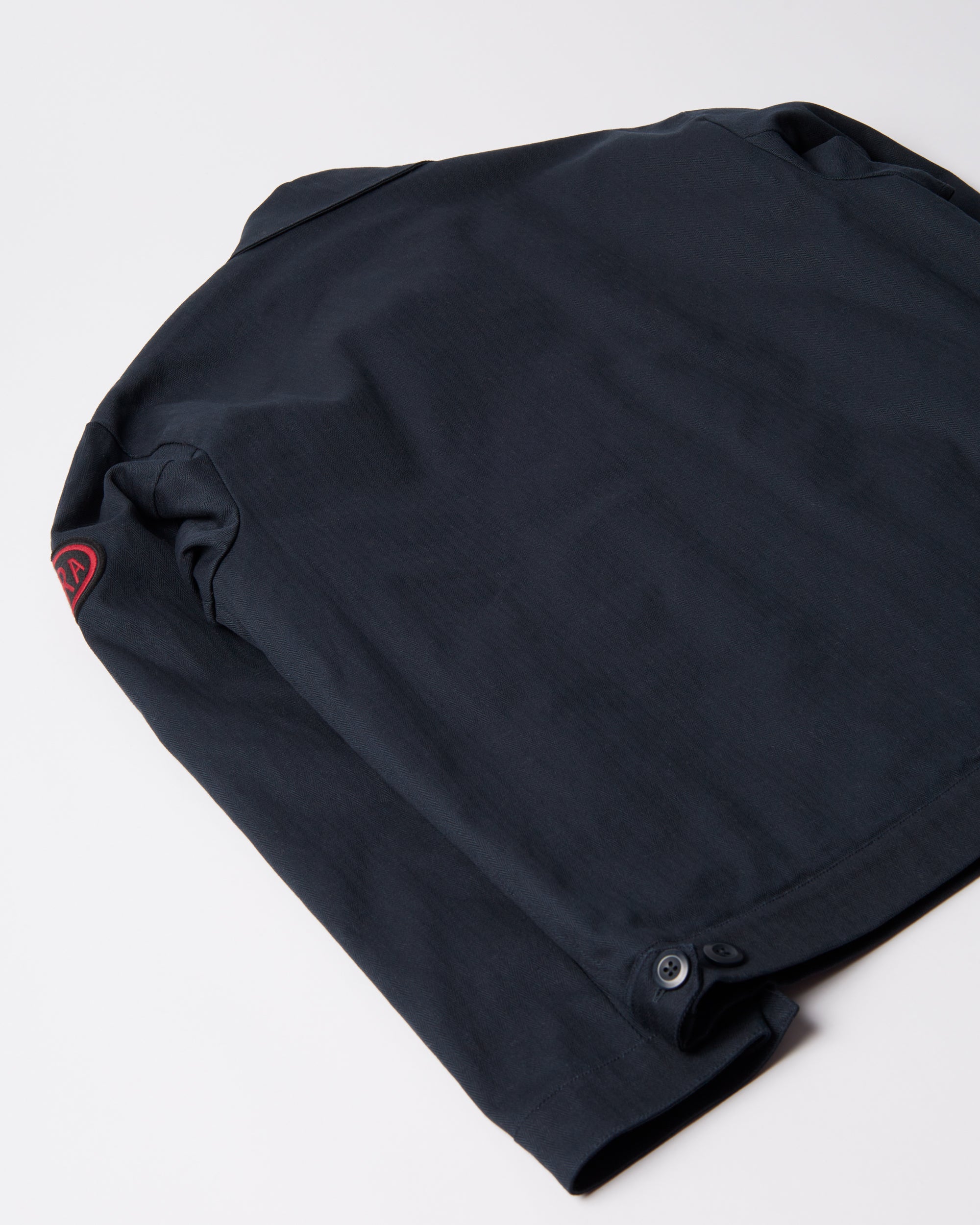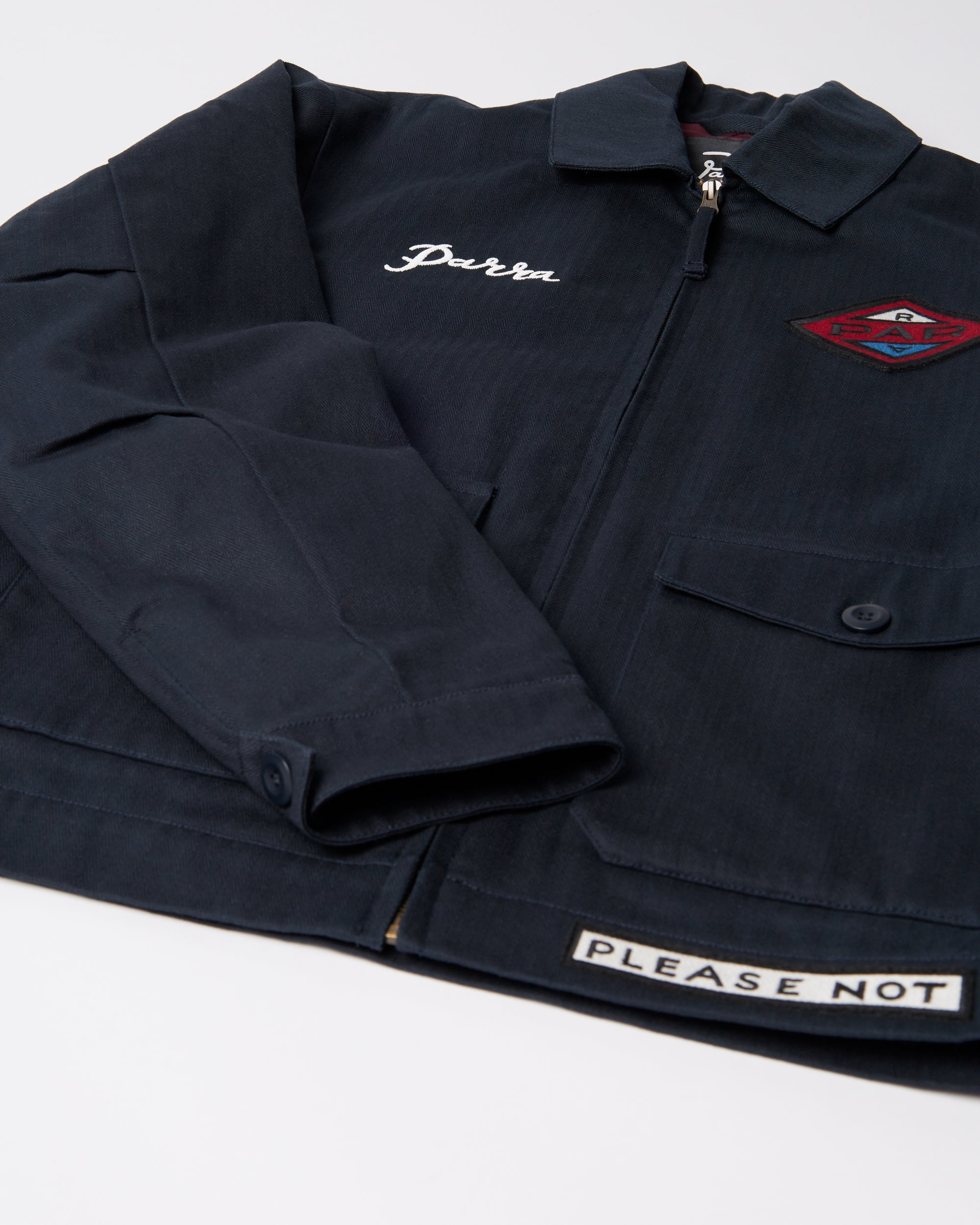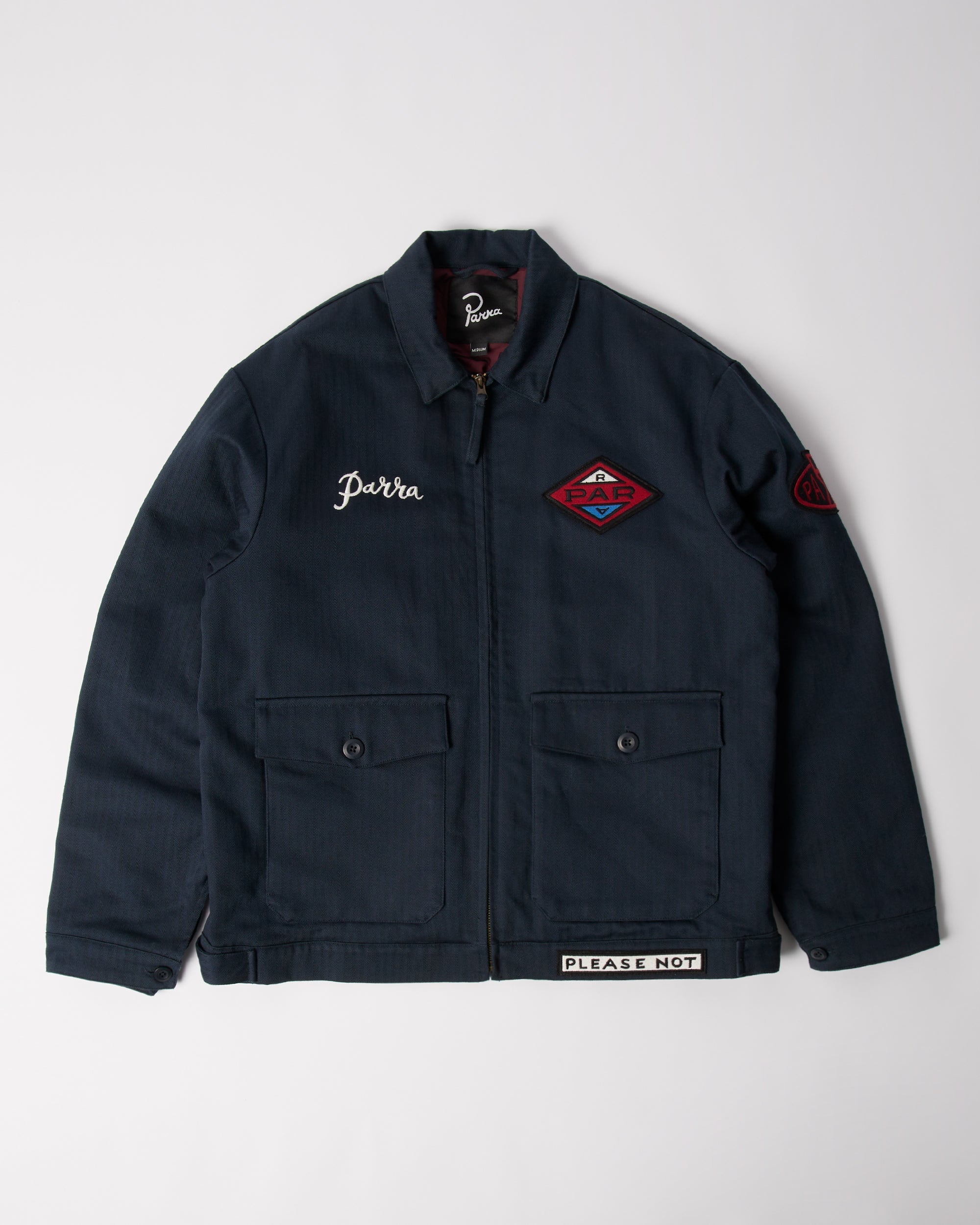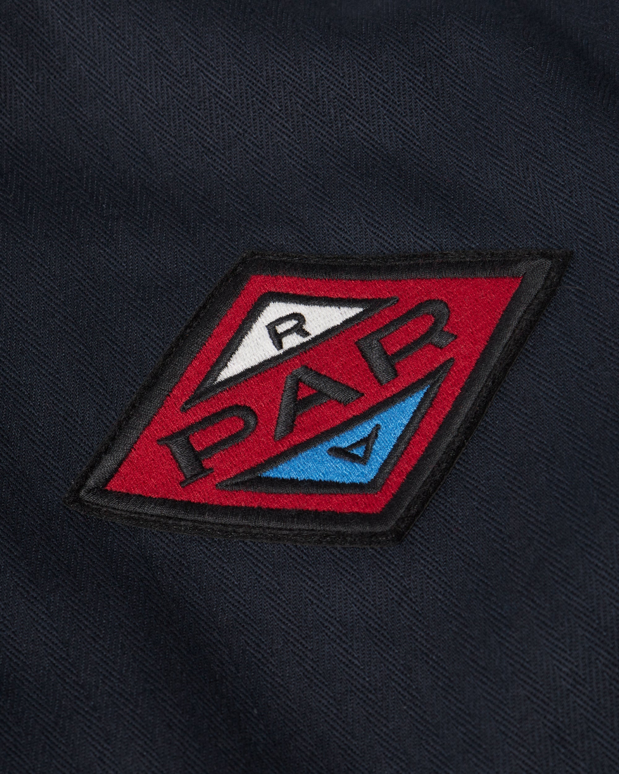 Jacket inspired on classic trucker jacket has embroideries on chest and one at the hem. Big print on the quilted lining.