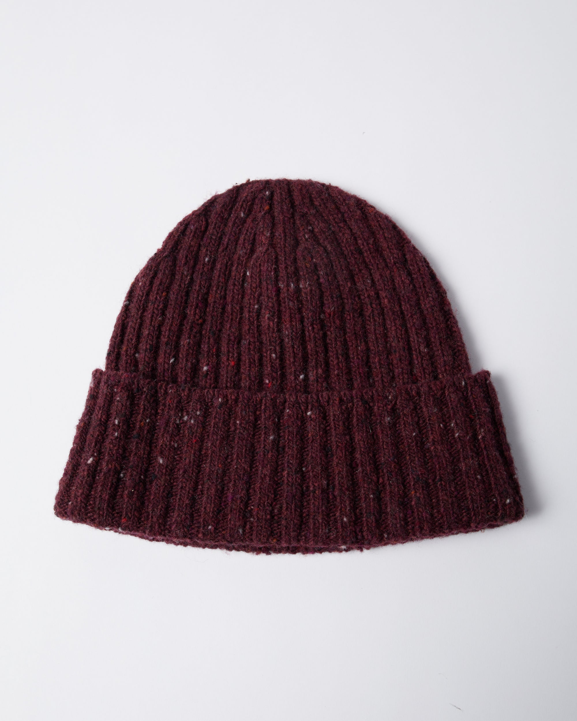 Circular-knitted beanie with the Reversed flag embroidery on it.