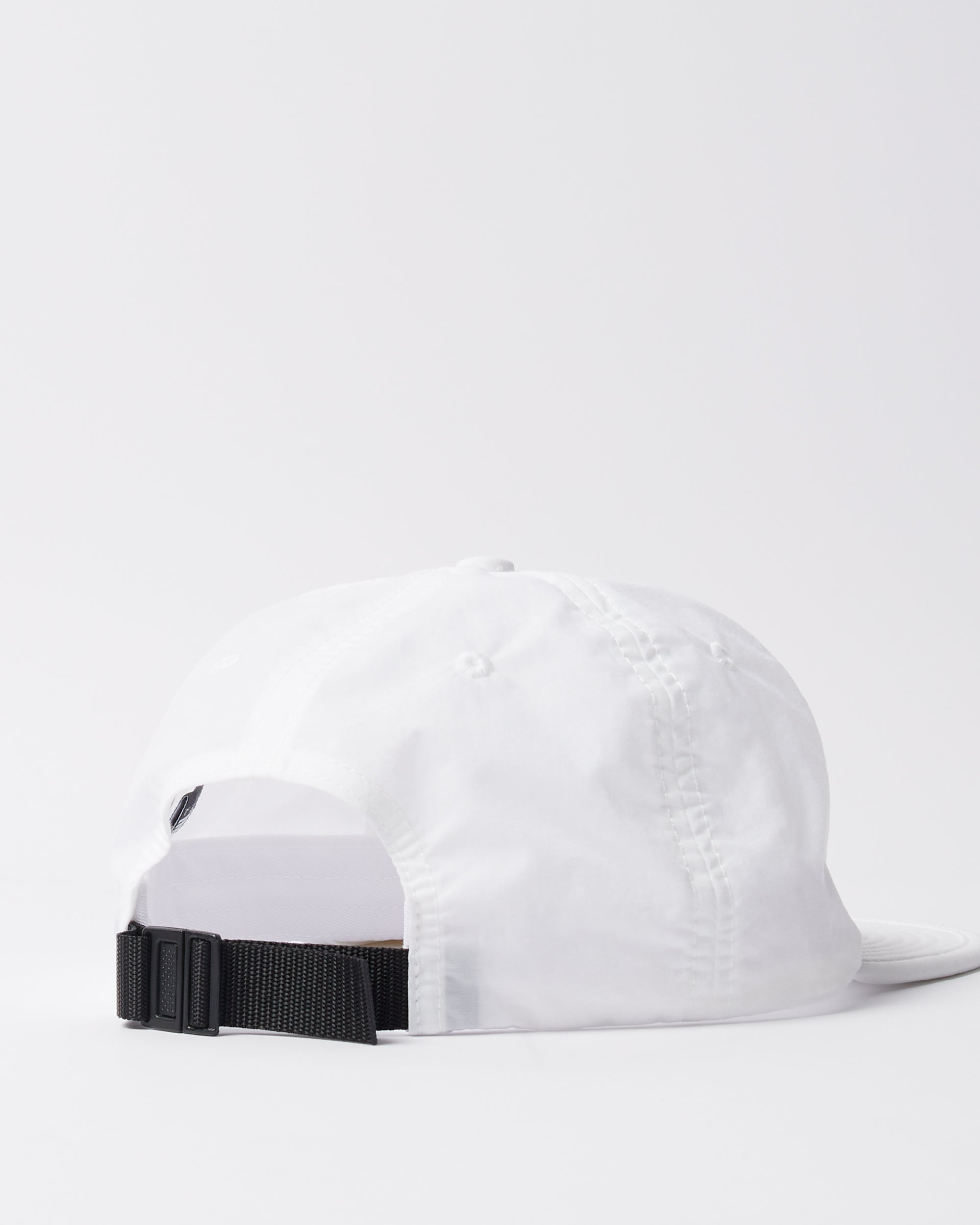 Unconstructed lightweight Cordura nylon fabric 6 panel hat with signature logo embroidery on the front.