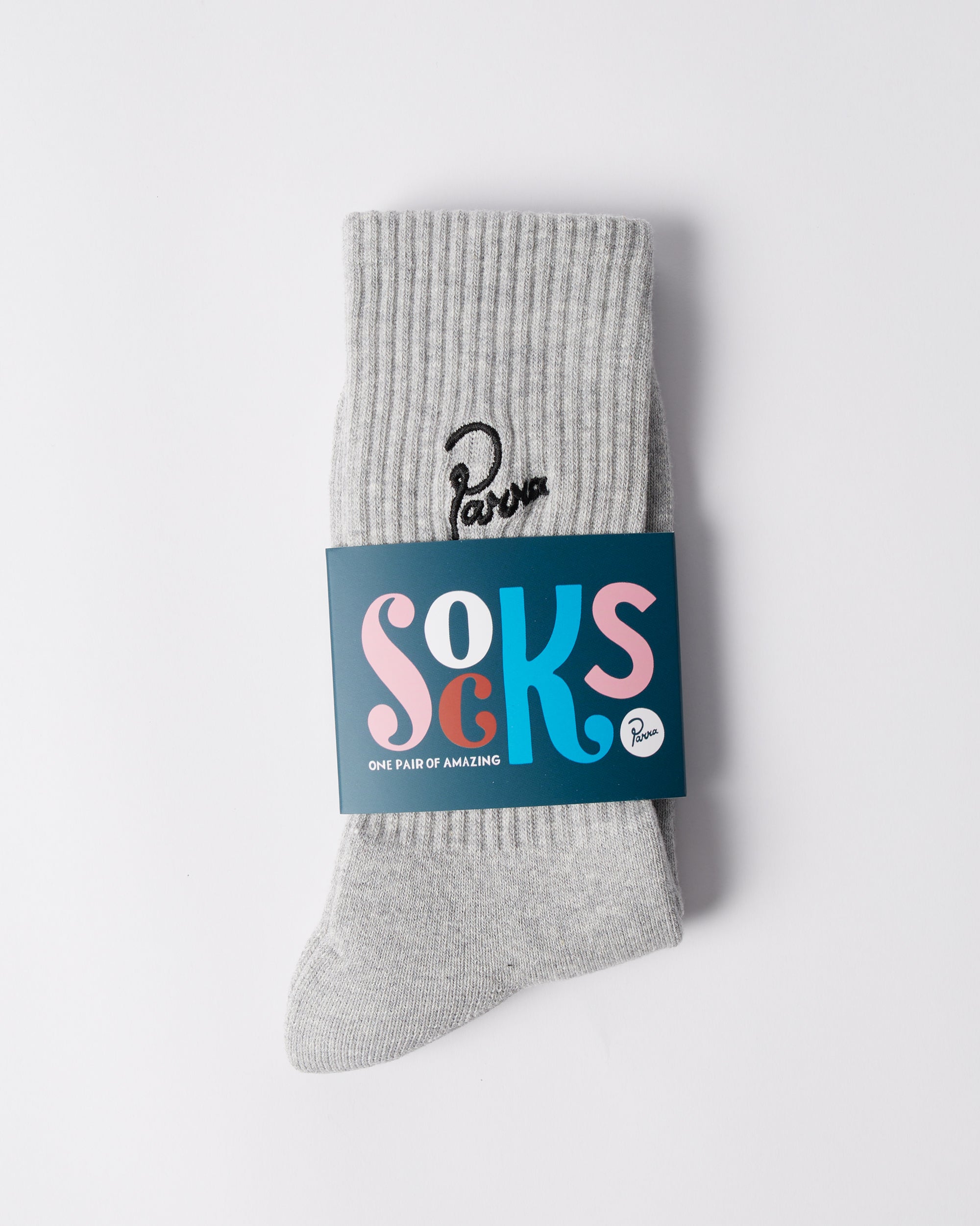 Classic signature logo embroidery on our premium fabric blend socks. Woven in Tokyo on a vintage circular knitting machine.