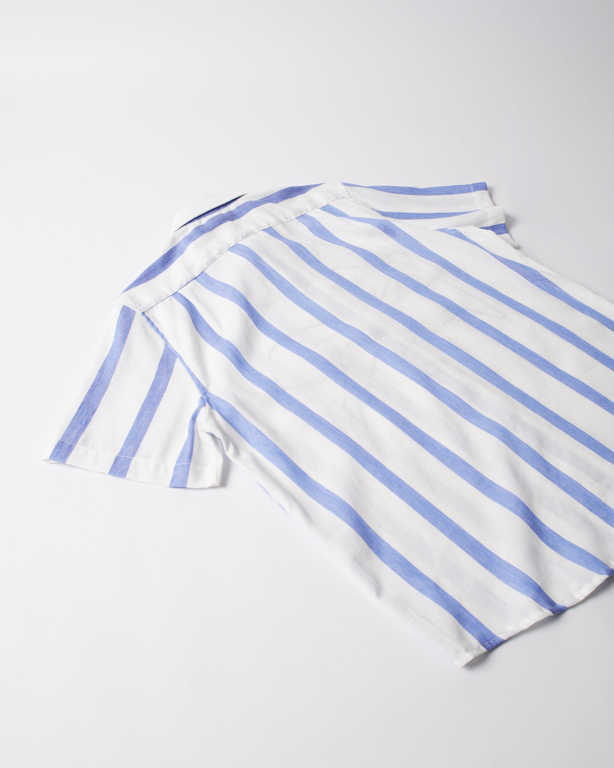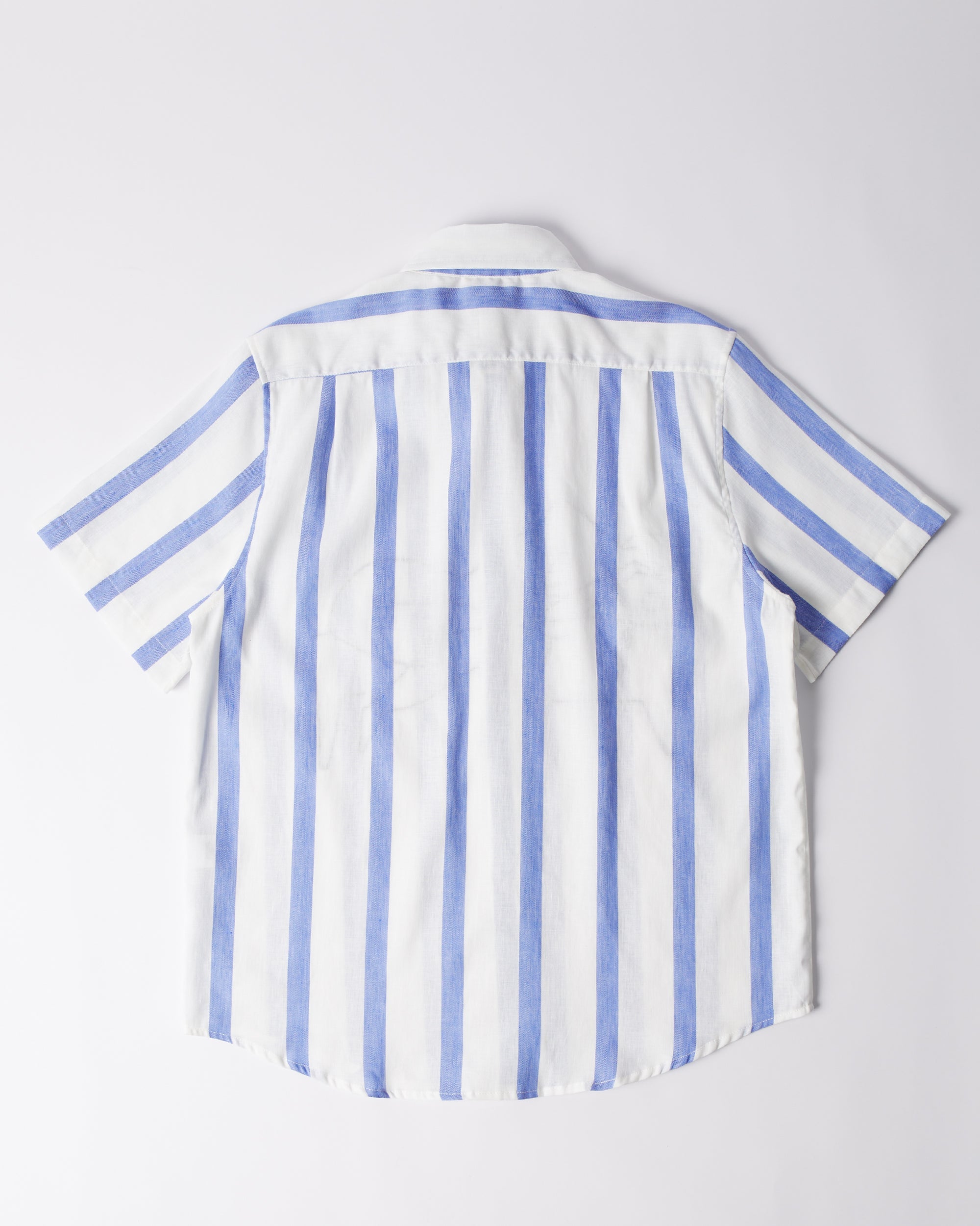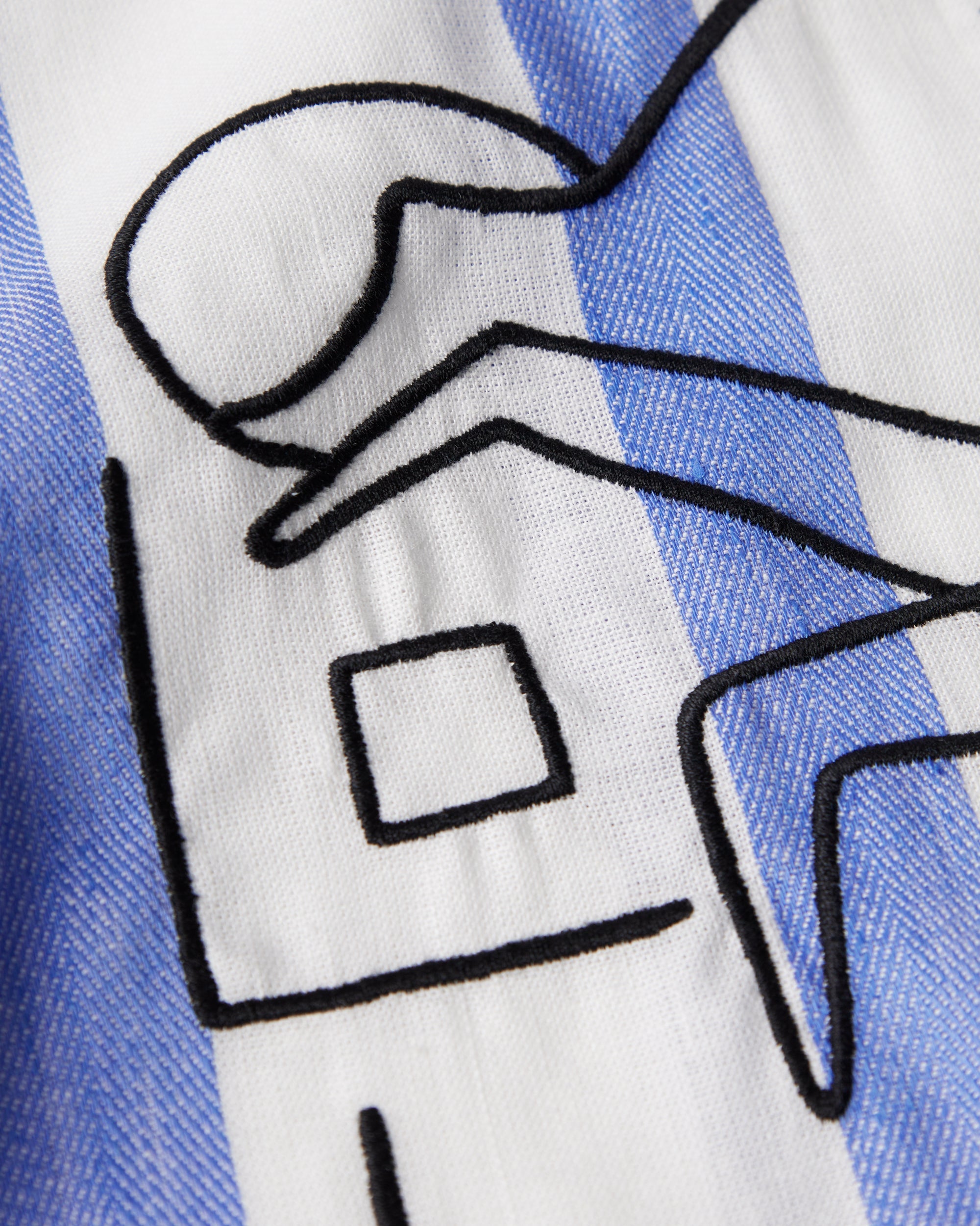 Short sleeve shirt made from a linen and cotton mix. Big embroidery on the front of the Sleep now artwork.