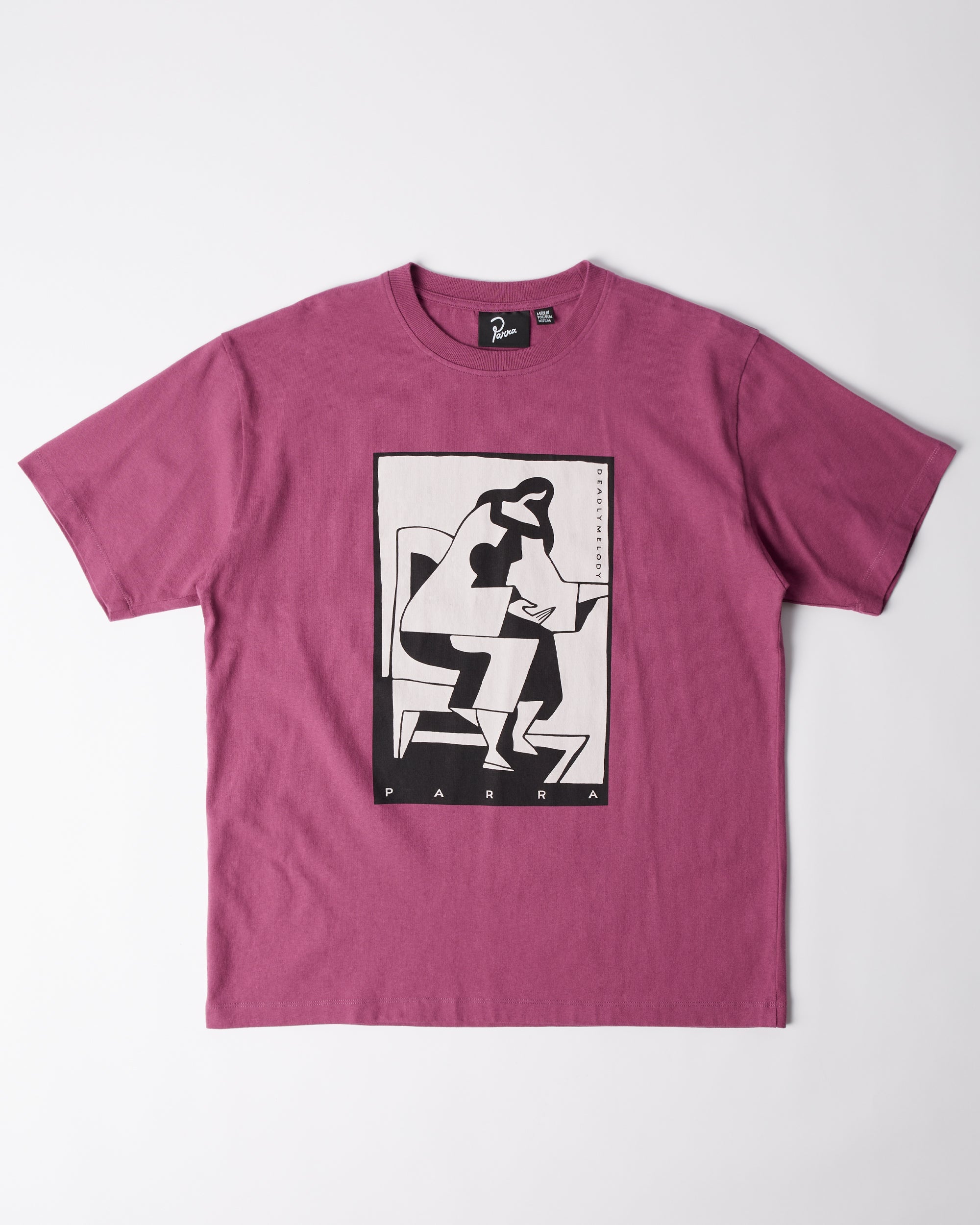 The confession artwork as a waterbased screenprint at chest. All Parra t-shirts are a boxy custom fit.