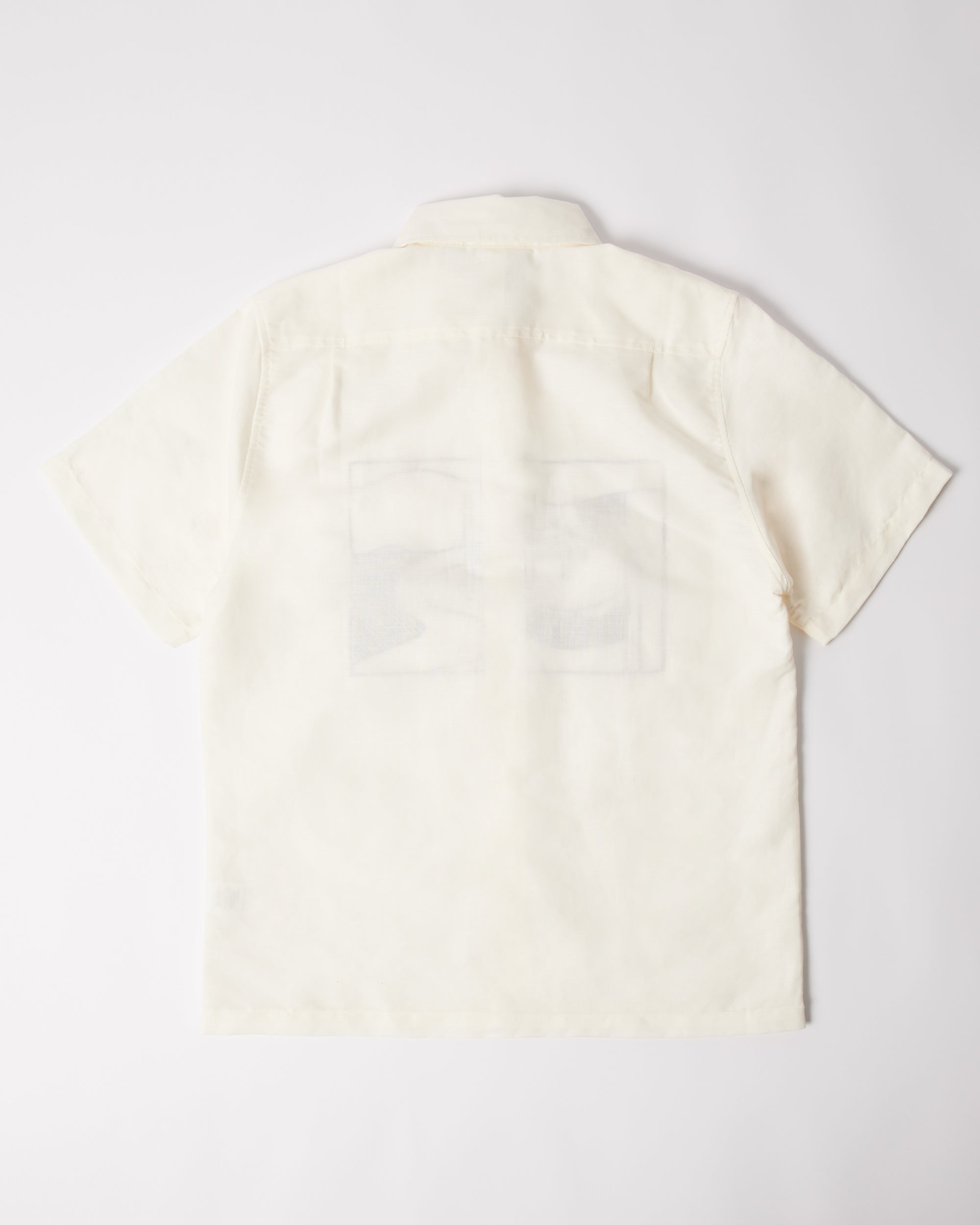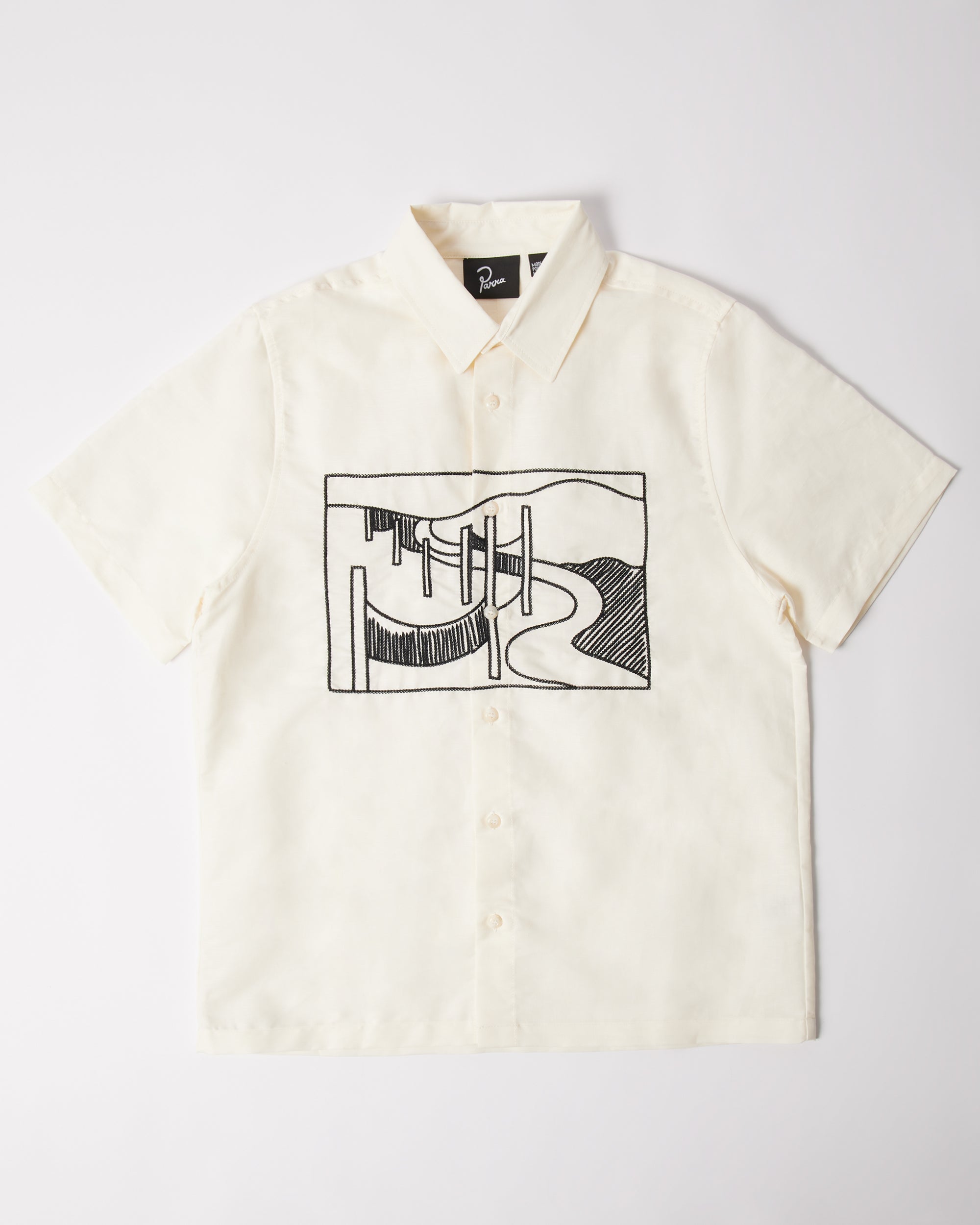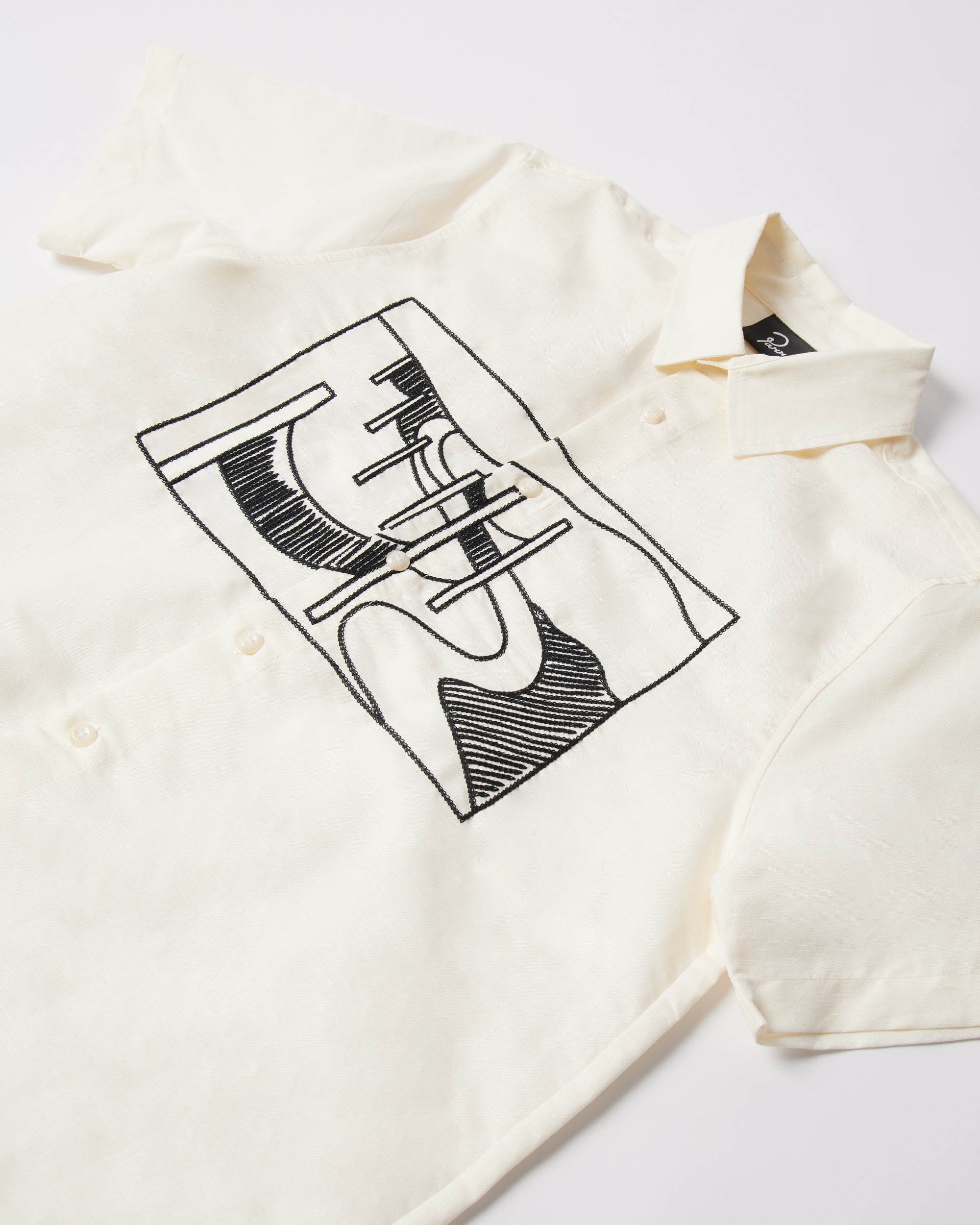 Button up short sleeve shirt with "The dunes" artwork as an chain stitch embroidery on the chest.