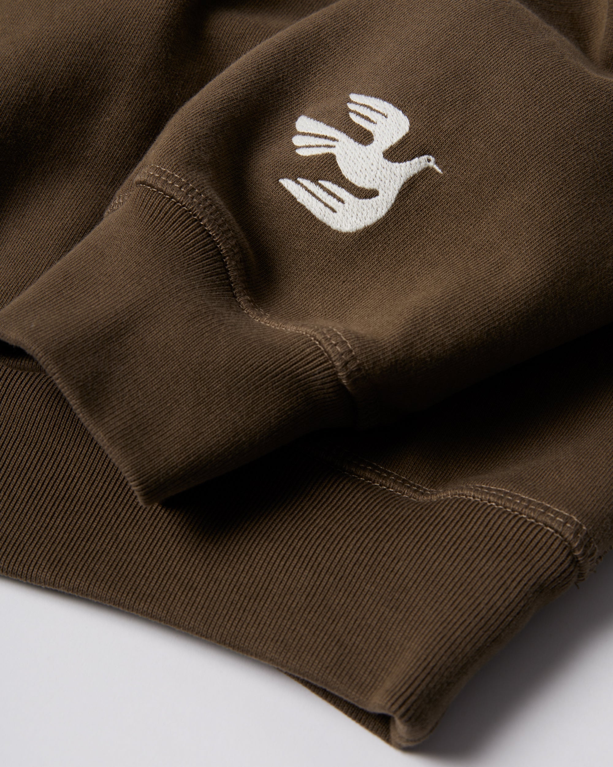 Weird trad logo as an embroidery on the chest and a small embroidery on the sleeve. Brushed inside for softness.