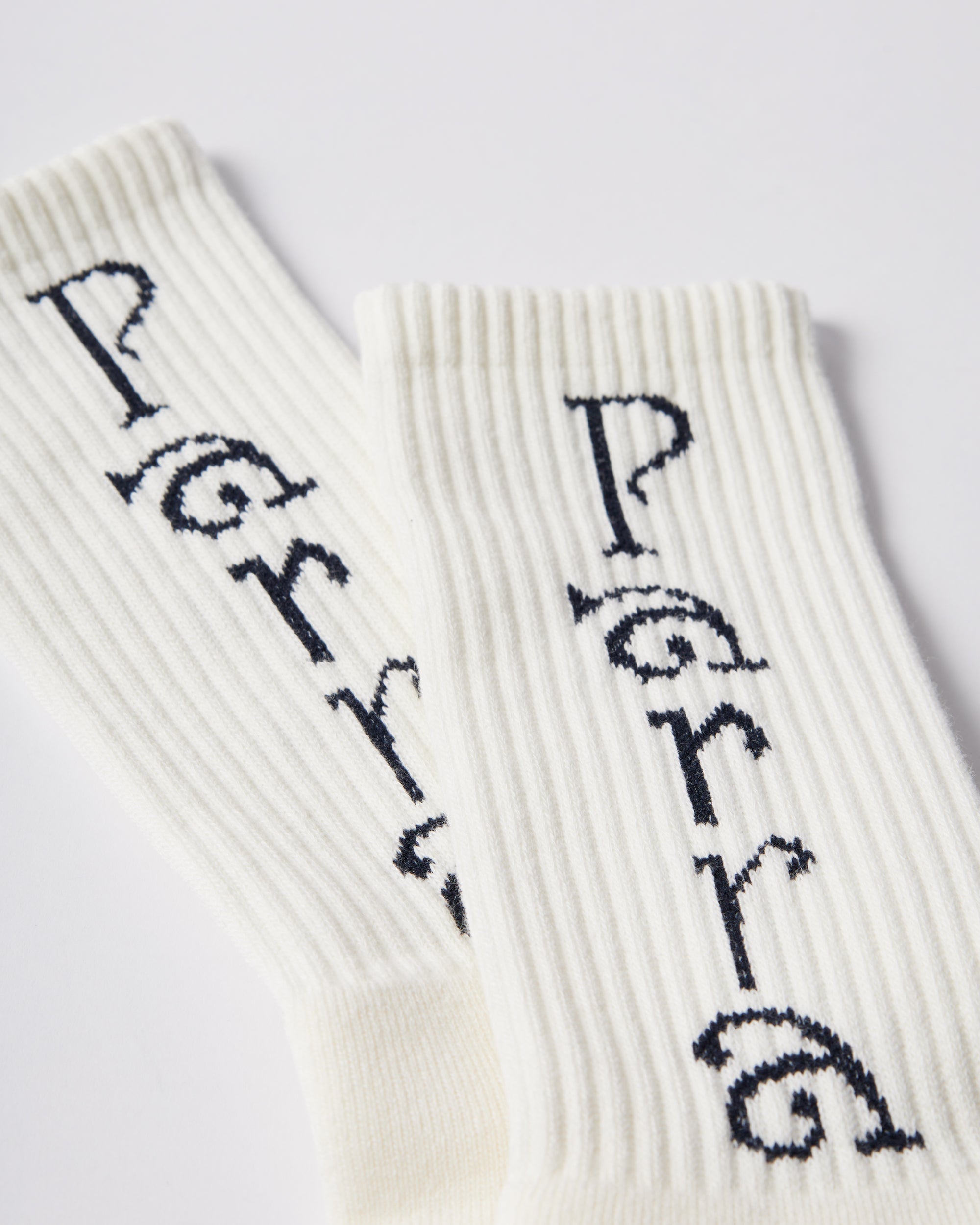 Tokyo logo woven on both sides on our premium fabric blend socks. Woven in Tokyo on a vintage circular knitting machine.