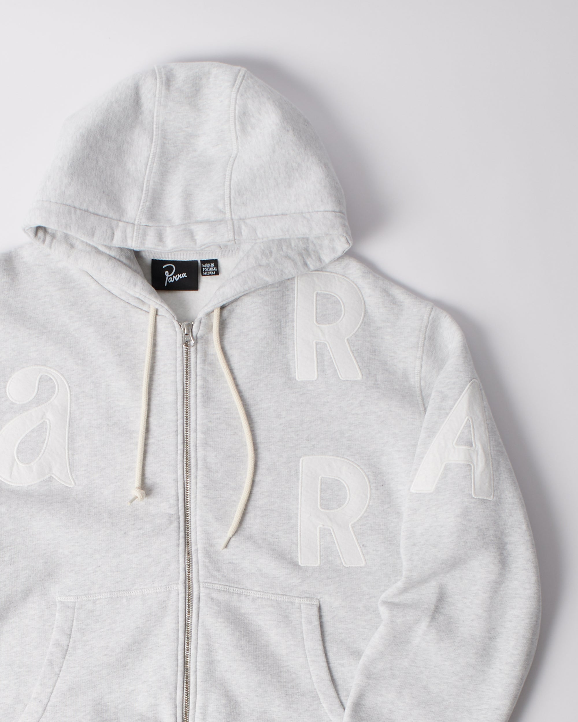 Zipper hoodie with appliqué lettering on the chest and sleeves. Made from extra heavy 100% cotton that's brushed on the inside for extra softness.